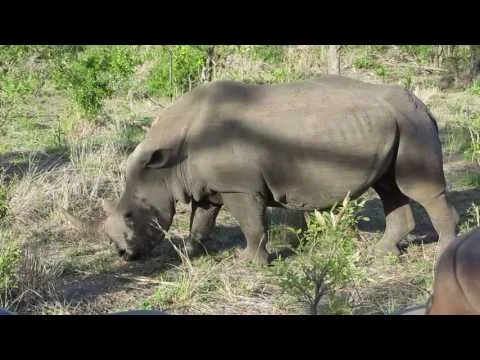 Thandi had been attacked by poachers for her horn and left for dead. After a long raod to recovery, she was able to give birth to her calf and both are doing really well now, despite the traumatic attack. By kind permission of Paul Mills and Grant Fowlds.